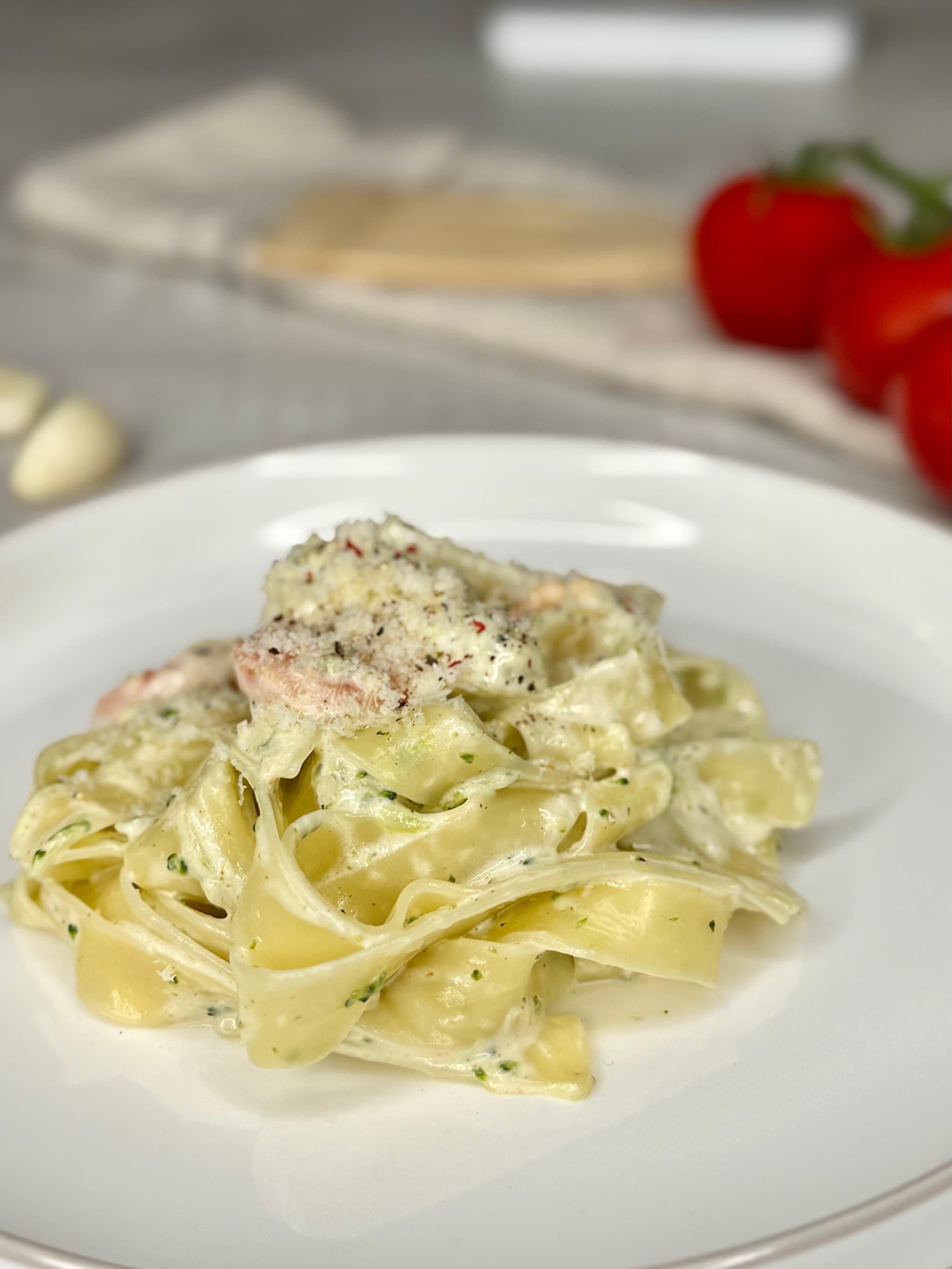 Kada se umak završava, u 1l vode dodajte sol i kuhajte rezance na umjerenoj vatri 5-6 minuta. Nakon toga ih procijedite te dodajte u umak i kuhajte još 2-3 minute, kad se sve sjedini sklonite sa vatre i poslužite.
